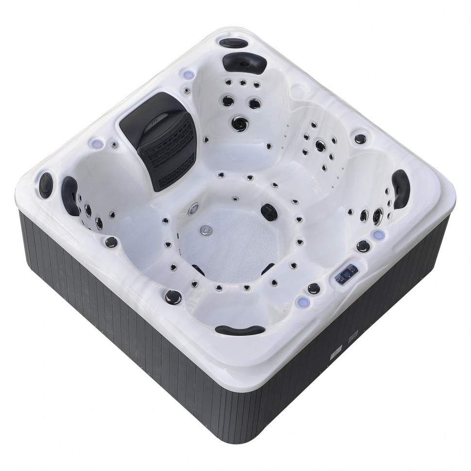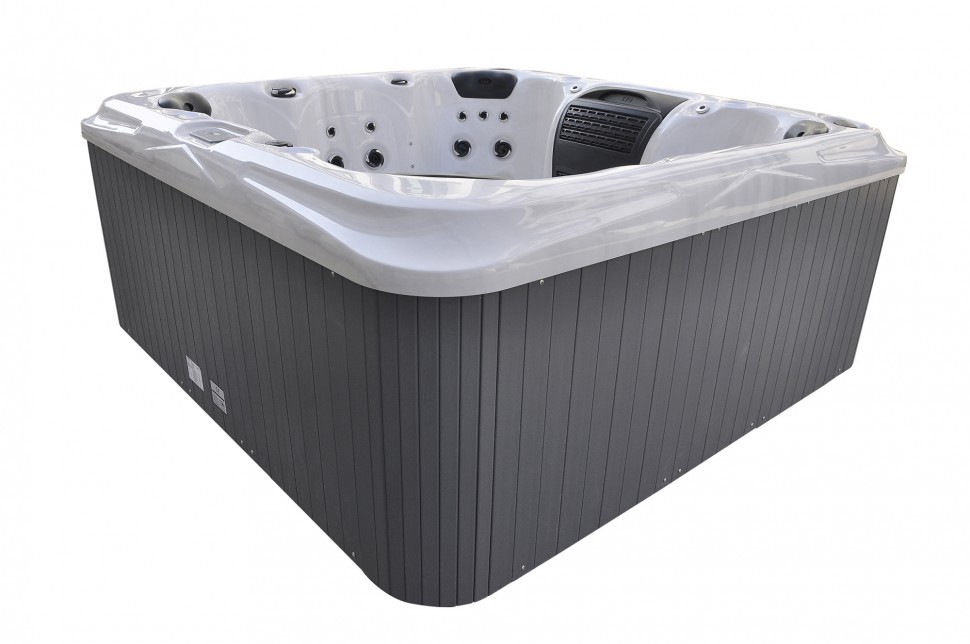 Квадратный гидромассажный комплекс размером 2200×2200×970 мм создан специально для наслаждения водными процедурами на свежем воздухе, предлагая идеальное сочетание функциональности и устойчивости к внешним воздействиям.